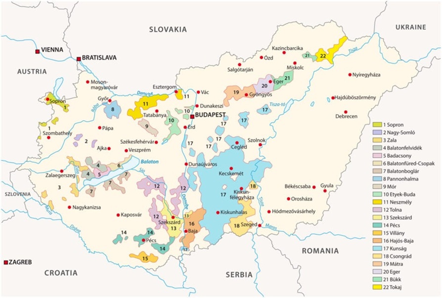 - Pincesorok, pincefalvak (Villány, Tokaj, Szépasszony-völgy, Hajós, Etyek, stb.)