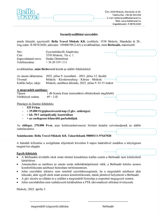 • Teljes közlekedési eszköz bérlése (busz, hajó, repülő)