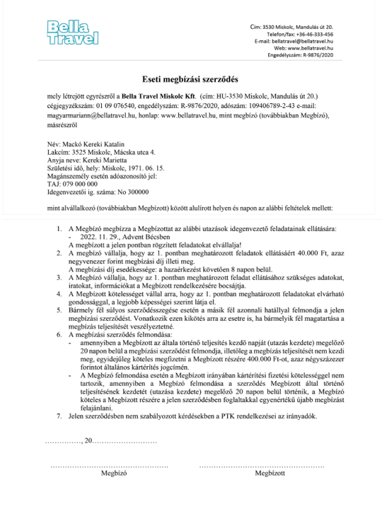• fontos kitérni a szerződésben: lemondás, módosítás